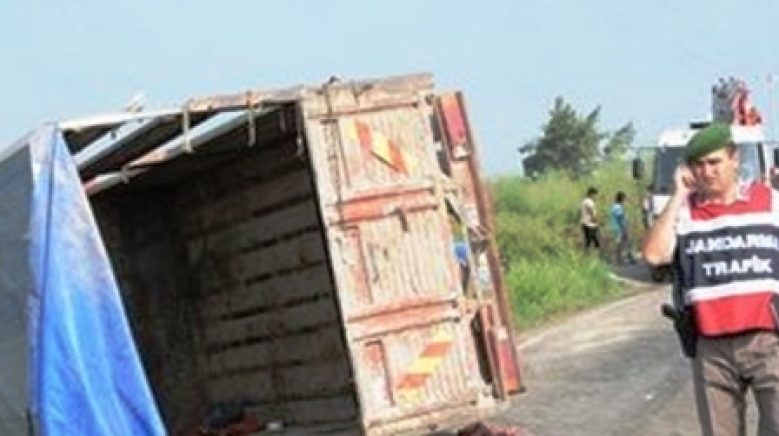 Tarsus'ta tarım işçilerini taşıyan bir kamyonetin devrilmesi sonucu meydana gelen kazada 2 kişi öldü, 13 kişi yaralandı.